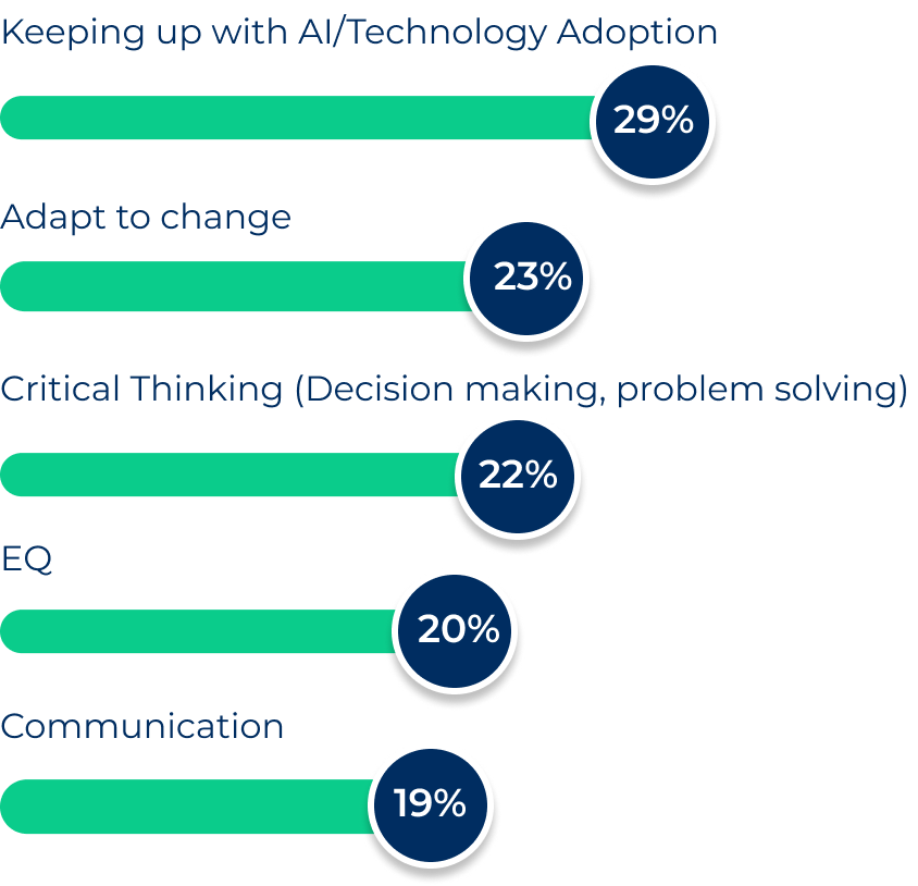 When asked which skills will be most critical for their workforce in the years ahead, respondents consistently identified both technology and human capabilities.
